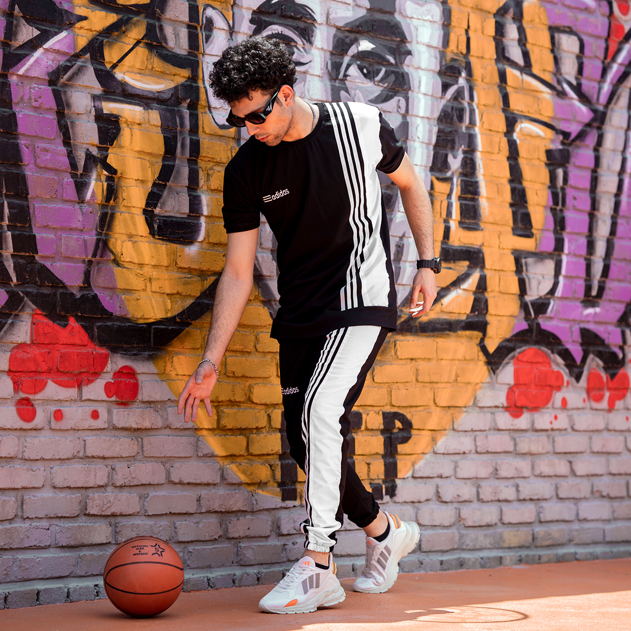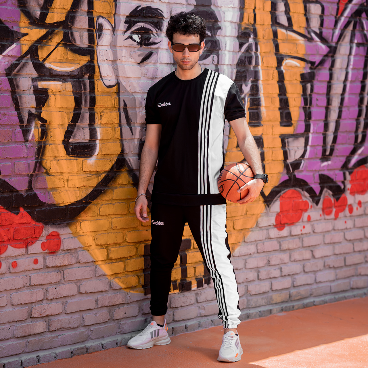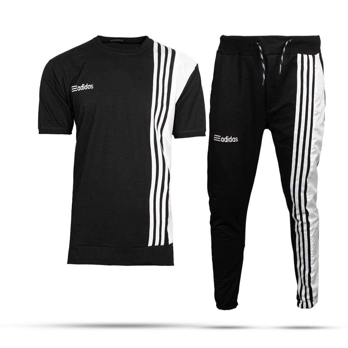 ست تیشرت شلوارآدیداس دورنگ سفید مشکی مردانه مدل b.s